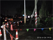 2016424日下午4時(shí),江門市突發(fā)暴雨天氣,下午6時(shí)突然接到緊急搶修通知——江門市蓬江區(qū)杜阮鎮(zhèn)子棉線龍安支線因路政管網(wǎng)施工,施工作業(yè)鉤機(jī)作業(yè)時(shí)損壞10kV子眠架空導(dǎo)線,導(dǎo)致大片居民用戶斷電,嚴(yán)重影響當(dāng)?shù)鼐用竦纳睢?/span>