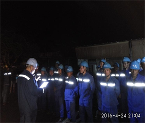 施工單位明浩配電事業(yè)部搶修現(xiàn)場(chǎng)負(fù)責(zé)人、江門市蓬江供電局、調(diào)度中心、運(yùn)維部門相關(guān)人員陸續(xù)來到搶修現(xiàn)場(chǎng),對(duì)現(xiàn)場(chǎng)進(jìn)行勘察,由于夜間作業(yè),輸電線路中斷導(dǎo)致大面積停電,搶修現(xiàn)場(chǎng)漆黑一片,施工照明不能全面覆蓋,現(xiàn)場(chǎng)施工搶修難度系數(shù)相應(yīng)增加。在確認(rèn)預(yù)制安全技術(shù)措施無誤后,現(xiàn)場(chǎng)負(fù)責(zé)人對(duì)施工作業(yè)人員進(jìn)行作業(yè)票講解和現(xiàn)場(chǎng)安全技術(shù)交底(附圖)。四川騰烽電力工程有限公司